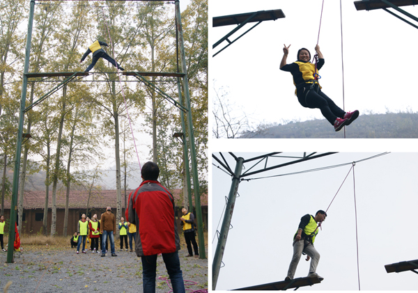 此次拓展訓練共有高空斷橋、盲人方陣等八個科目,每個科目都具有特定的訓練功能。使大家在戰(zhàn)勝恐懼、釋放潛力、開動腦筋、協(xié)調配合等方面得到了鍛煉和提高。本次活動在武安山區(qū)一家度假村舉行,使大家在拓展提高的同時,也能呼吸到戶外新鮮的空氣。