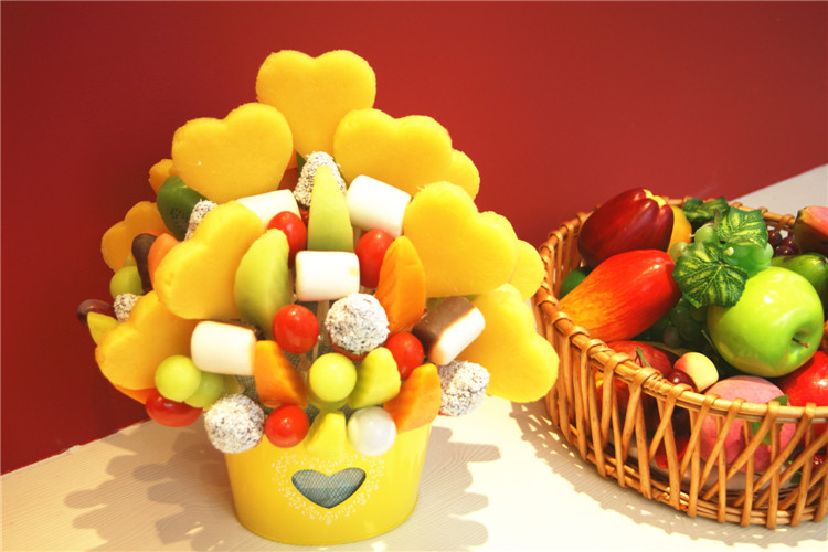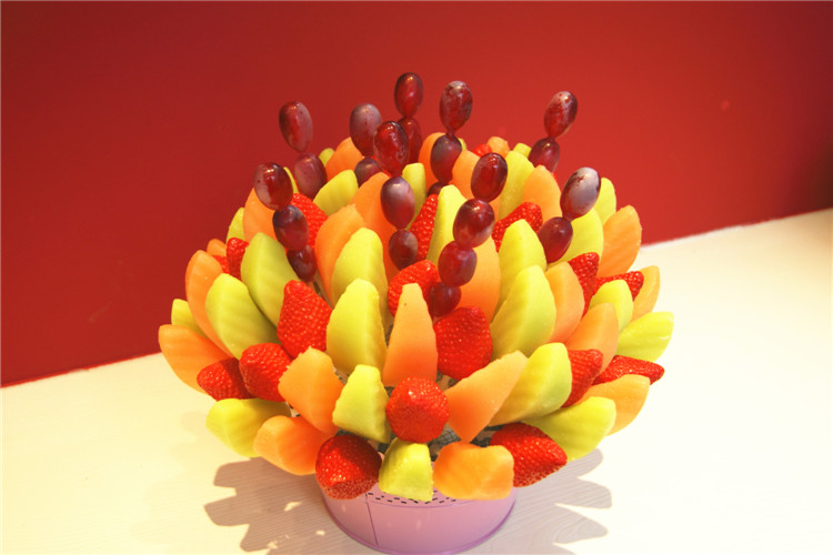 果麗美水果花采用的水果均選自全球最優(yōu)產(chǎn)地,菠蘿、香蕉來(lái)自菲律賓,網(wǎng)紋瓜來(lái)自緬甸、哈密瓜來(lái)自新疆、草莓為中國(guó)有機(jī)、紅提來(lái)自美國(guó),搭配費(fèi)列羅巧克力、美國(guó)杏仁、菲律賓椰蓉等進(jìn)口輔料,只為給你與眾不同的快樂(lè)!