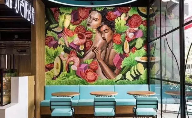 靠窗的墻壁上,是一副恩愛(ài)情侶圖,比較明顯的點(diǎn)名“色”這一重要主旨?,F(xiàn)代主題餐廳效果圖中,不發(fā)時(shí)尚元素,當(dāng)然也需要一些更為大膽的創(chuàng)新設(shè)計(jì),才能讓人流連。