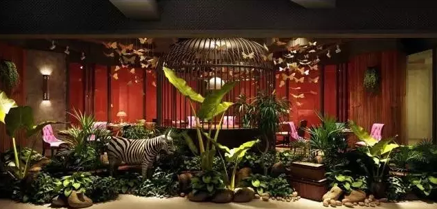 現(xiàn)代主題餐廳效果圖中,滲入了許多時(shí)尚元素,在考慮到現(xiàn)代人喜愛(ài)簡(jiǎn)潔這一要點(diǎn),餐廳的布局更顯簡(jiǎn)潔。這時(shí)一家以極進(jìn)自然的餐廳,墻面用綠色藤蔓做裝飾,吊頂也掛上樹枝裝飾,悠閑且浪漫。